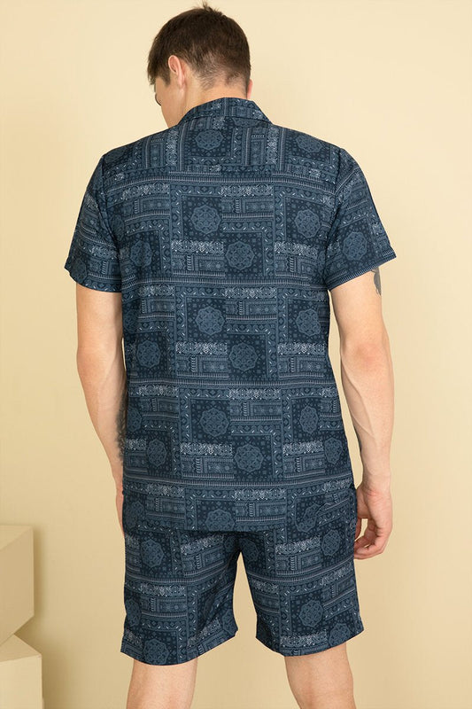 MEN'S EXCLUSIVE POPCORN FABRIC SHIRT & SHORTS PAIR