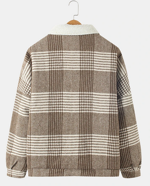 Mens Plaid Single Breasted Lapel Double Pocket Casual Woolen Jackets