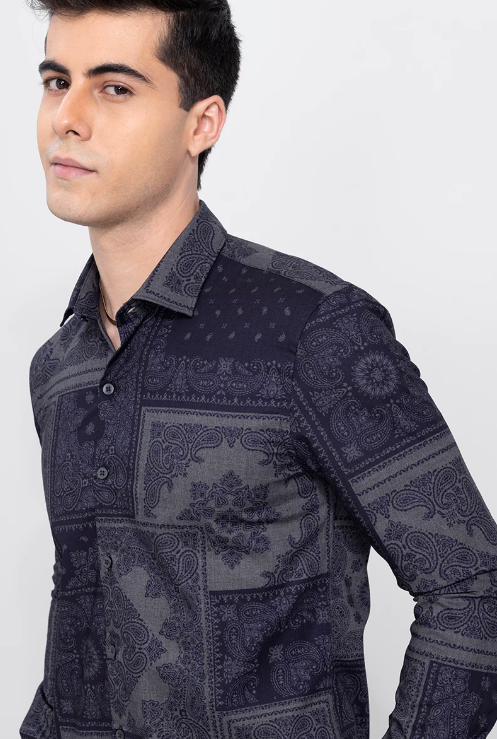 FORMY NAVY LUXURY SATIN COTTON SHIRT FOR MEN'S