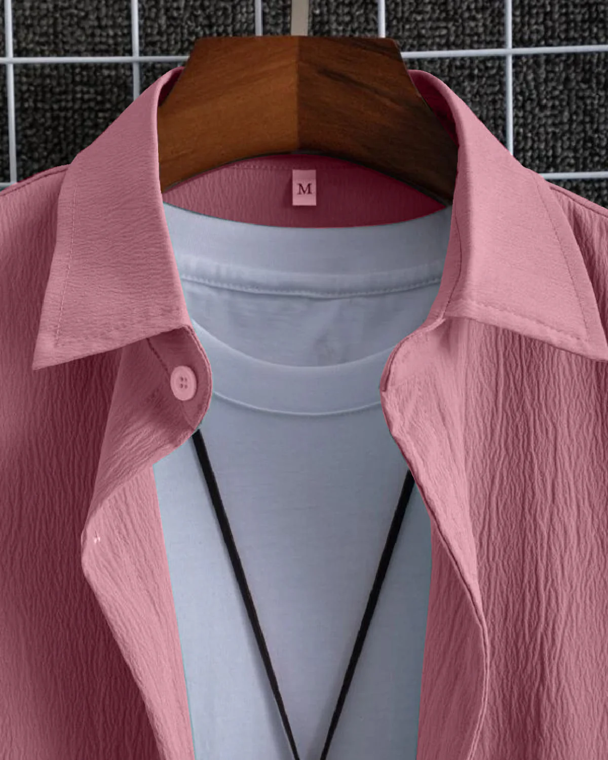 Bucolic Pink Seersucker Half Sleeve Shirt