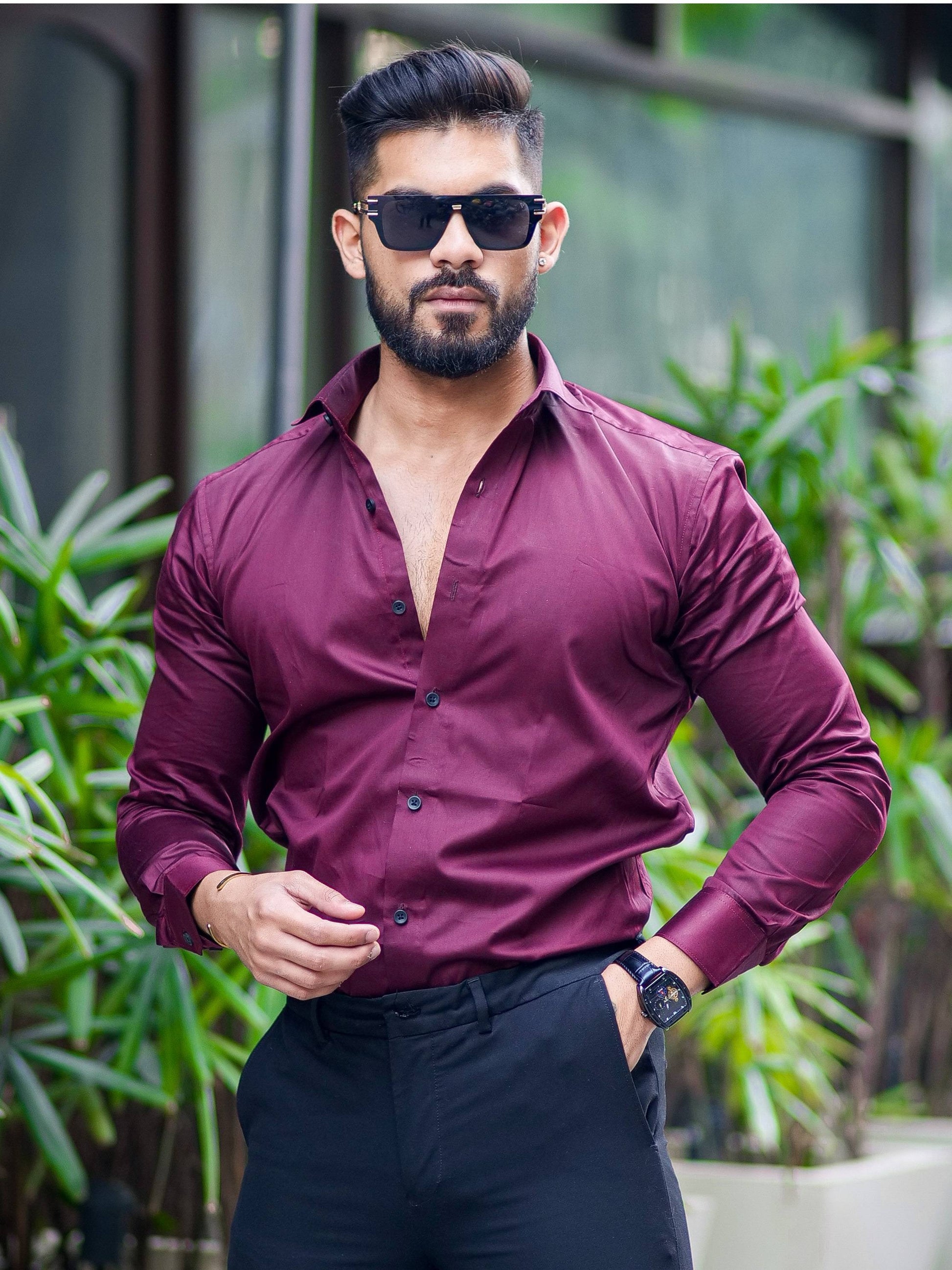 FORMY DARK WINE BERRY REGULAR FIT LUXURY SATIN SHIRT FOR MEN'S
