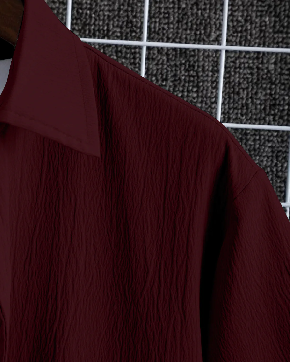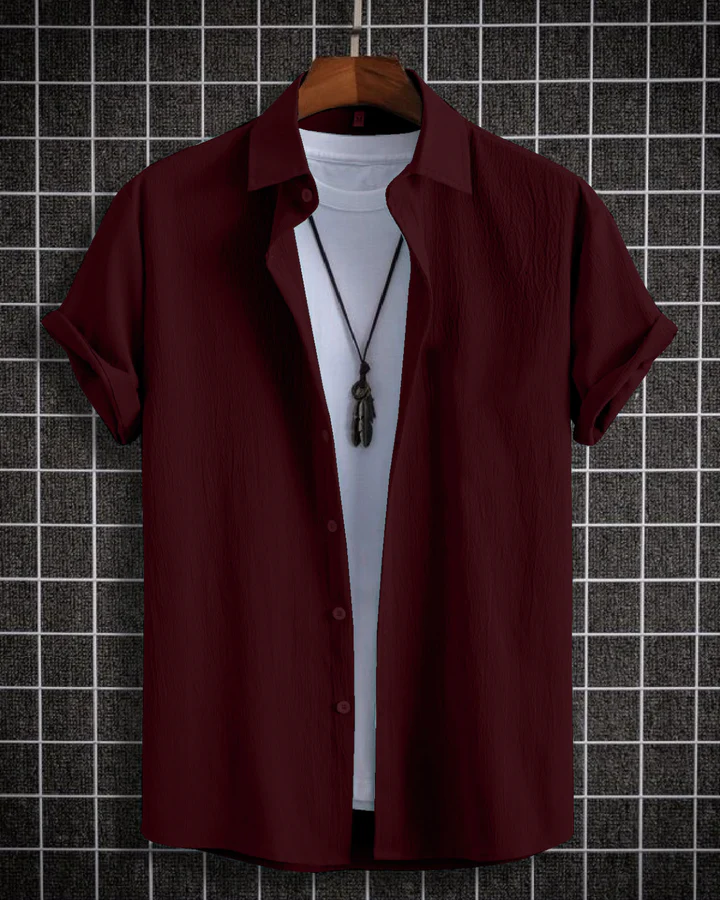 Glittering Maroon Seersucker Half Sleeve Shirt