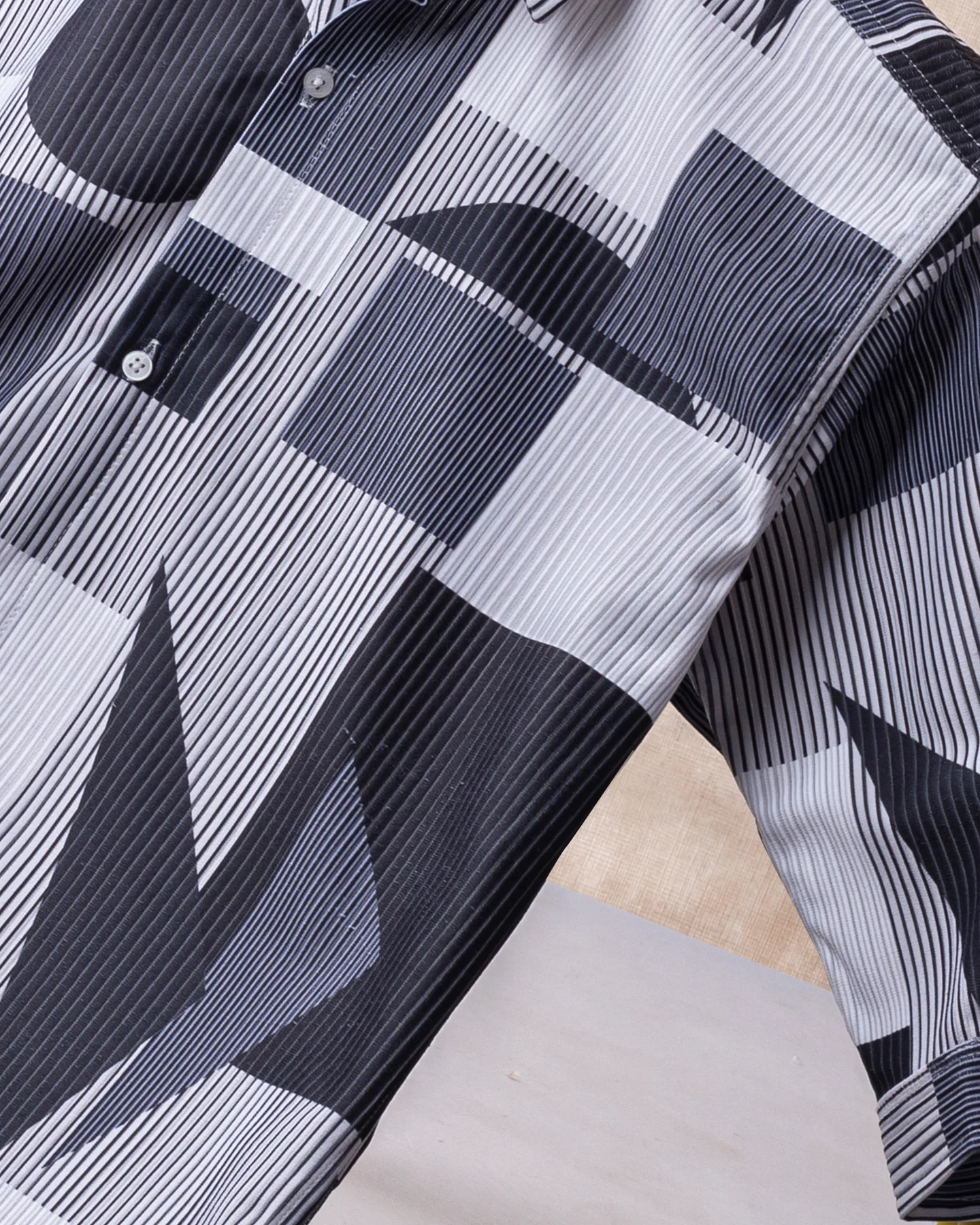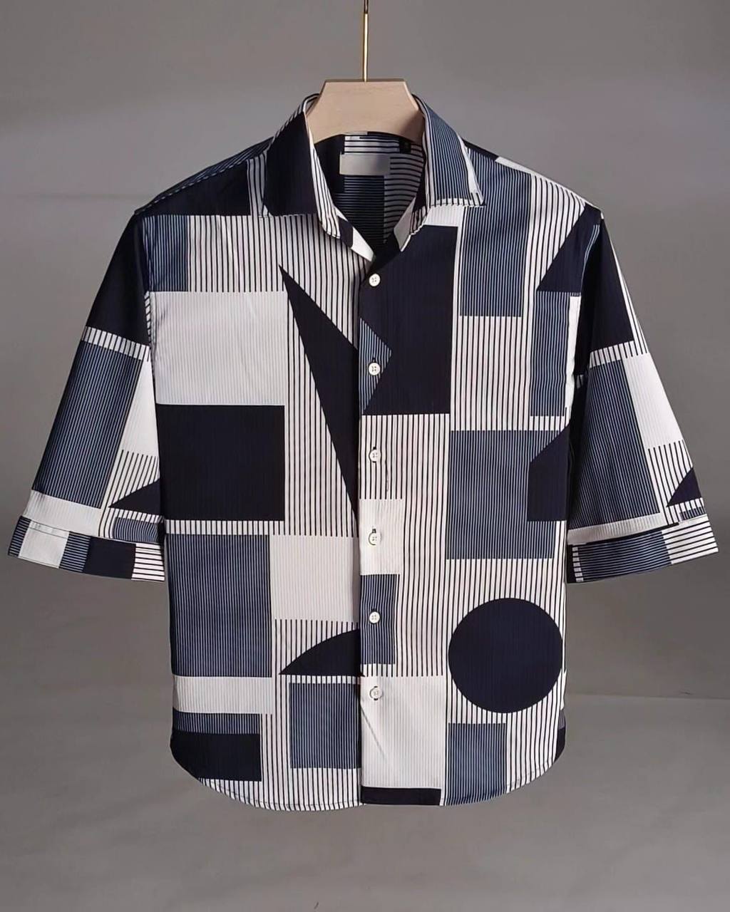GREY WITH WHITE SQUARE AND CIRCLE POP-CORN SHIRT