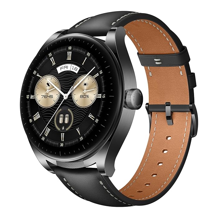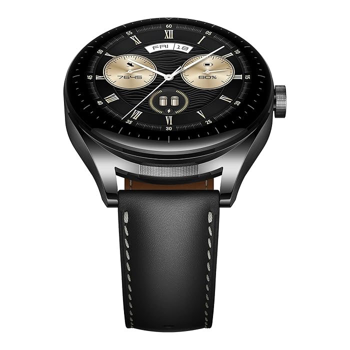 - 【Advanced Design, Assured Durability】The 3D curved glass is embedded into the 1300°C refined steel body. The button and watch crown are decorated with 710 studs, which flawlessly complement the leather strap.